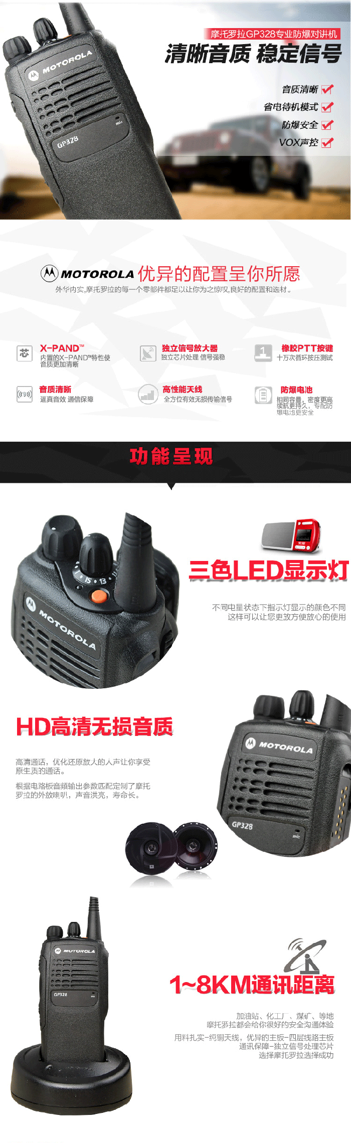 * 采用摩托罗拉专有的语音处理技术 X-PAND™ 和 LLE,能实现更为清脆响亮、更为清晰可靠的语音质量,使您在嘈杂的环境中仍可以保持畅通的联系。