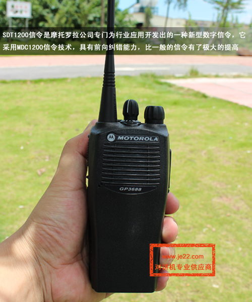 2004年11月1日托罗拉(中国)电子有限公司正式在国内市场推出摩托罗拉最新一款常规手持无线电对讲机GP3688。GP3688对讲机满足11项美军标,在恶劣环境下仍能保障实时、可靠的通信。强劲的音频输出能够保障噪声环境中畅通无阻的通信,优秀的射频指标和语音压扩功能可减少高音量下的音频失真。采用了SDT1200信令的GP3688对讲机能够充分满足铁路运输、企业保安保卫、林业、物流中心管理、服务业和建筑制造等行业应用的需求。GP3688拥有坚强的品质、非凡的数据功能以及更加人性化的设计,符合国内用户的实际应用环境和工作特点。