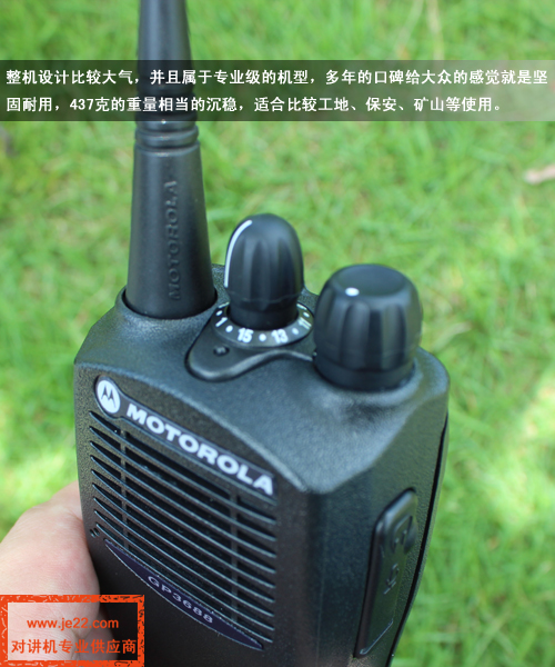 GP3688对讲机所采用的SDT1200数字信令,具有前向纠错的功能,其传输的可靠性和抗干扰能力得到极大的提高。此外,摩托罗拉还针对国内用户的行业特点,做了量体裁衣的定制。以铁路行业为例,摩托罗拉公司专门推出了三孔机机型,大大简化了对讲机的操作。 "摩托罗拉GP3688传承了摩托罗拉对讲机的坚强品质,同时也针对本地用户进行了大量的特殊设计,且具备充分满足各种行业应用的潜能,能够引领行业发展的潮流。它为行业用户提供简单、专业、可靠和高性价比的无线通信解决方案,能够帮助用户增强调度管理的能力、提高生产力。" 摩托罗拉(中国)电子有限公司专业无线通信部中国地区总监王欣先生表示。