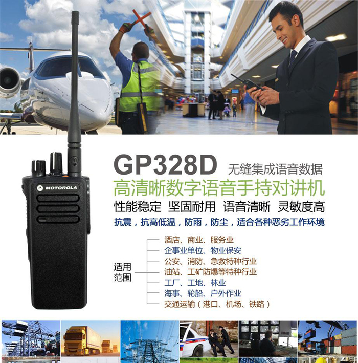 毋容置疑,数字对讲机能够获得更清晰的语音通话效果。GP328D手持对讲机在覆盖区域内都能为您带来出色的数字音频性能,其独特功能,能帮助员工无论身在何处都能清晰地通话。