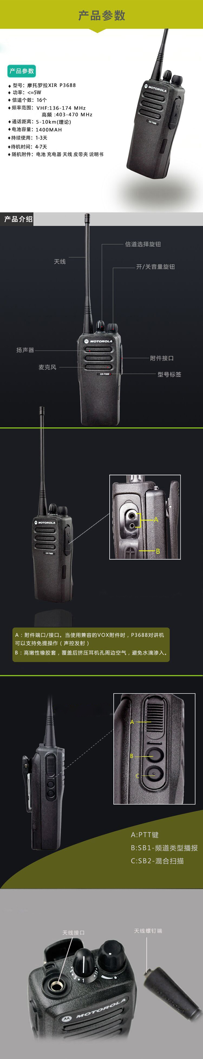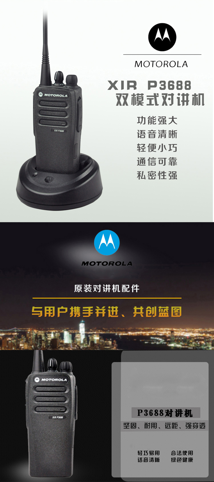 XiR P3688对讲机凭借易于使用的人体工程学设计和明快清晰的语音功能,可以使您的团队更加高效地开展工作。XiR P3688专门为兼具高效操作和高性价比的对讲通信需求设计,为此每台对讲机中都集成了摩托罗拉无线管理解决方案中卓越的团队管理功能。
