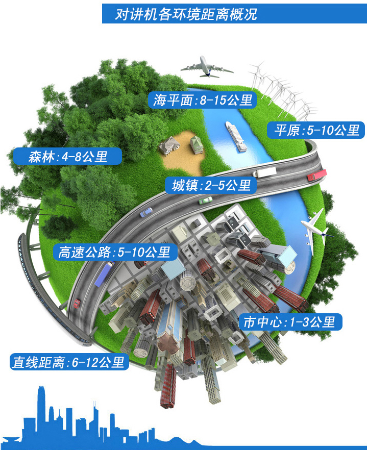 虽然对讲机的通讯距离很难说得清道得明,然而大家依然非常的关切这个问题,根据笔者综合多年的客户反馈以及自己的测验经验,得出了一个大概的对讲机有效距离范围,以供大家参考: