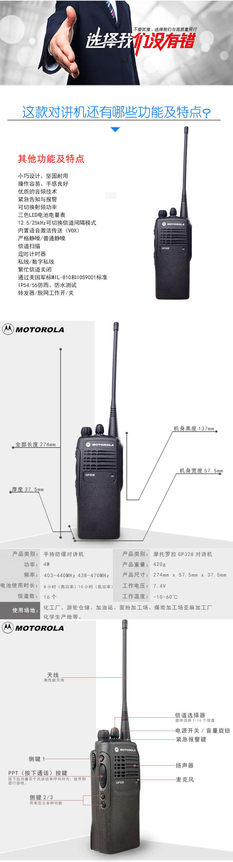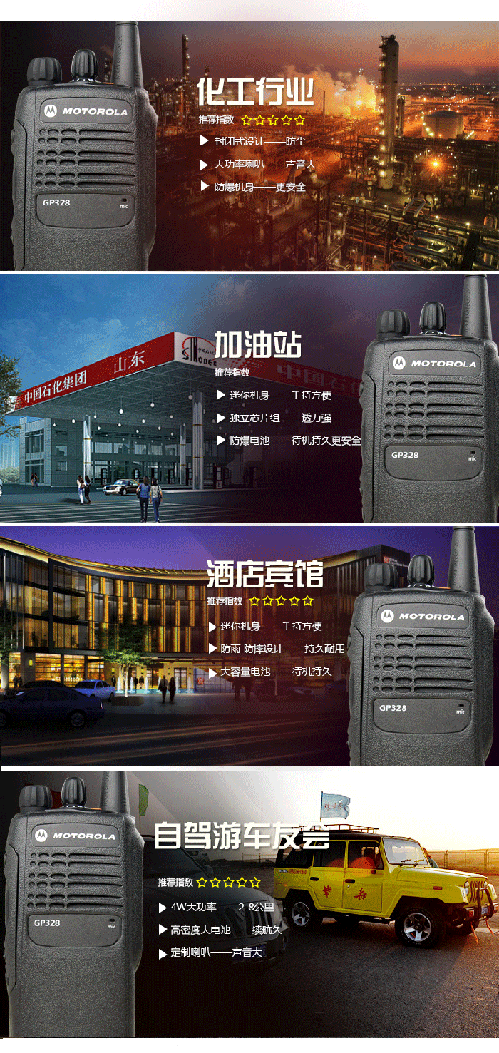 对于需要始终保持联系但又不要求额外功能的人士来说,摩托罗拉GP328是一个经济实惠的解决方案。此款机型为企业通讯解决方案带来实用性。它既可以让用户保持联系,同时又简化了操作,使用户得以集中精力从事其工作,从而能轻而易举地提高生产力。GP328的设计宗旨是应用于那些在工作环境中频繁走动的行业,如酒店业、仓储业、资产管理、零售业,学校和建筑工地。