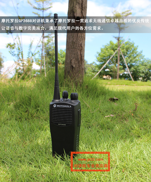 2004年11月1日托罗拉(中国)电子有限公司正式在国内市场推出摩托罗拉最新一款常规手持无线电对讲机GP3688。GP3688对讲机满足11项美军标,在恶劣环境下仍能保障实时、可靠的通信。强劲的音频输出能够保障噪声环境中畅通无阻的通信,优秀的射频指标和语音压扩功能可减少高音量下的音频失真。采用了SDT1200信令的GP3688对讲机能够充分满足铁路运输、企业保安保卫、林业、物流中心管理、服务业和建筑制造等行业应用的需求。GP3688拥有坚强的品质、非凡的数据功能以及更加人性化的设计,符合国内用户的实际应用环境和工作特点。